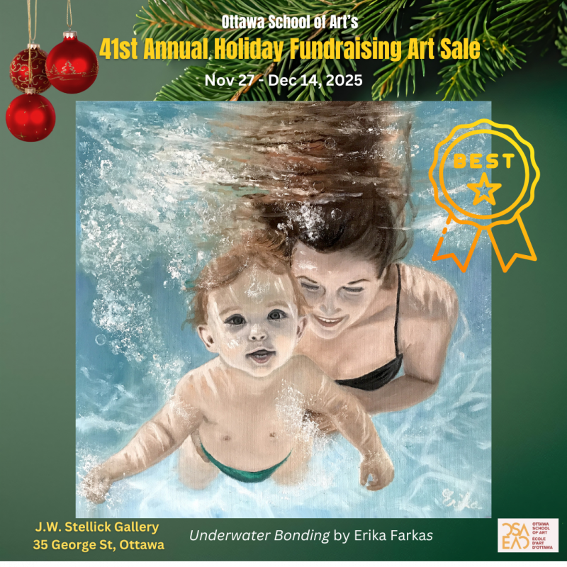 Delighted and humbled that my “Drawn to the Light” and “Underwater Bonding” oil paintings have won BEST IN SHOW AWARDS in the 41st Holiday Fundraising Art Exhibit organized by the Ottawa School of Art at the JW Stellick Gallery. This is my second “best” award, as last year I also received one for my “Our Spot” pastel painting.