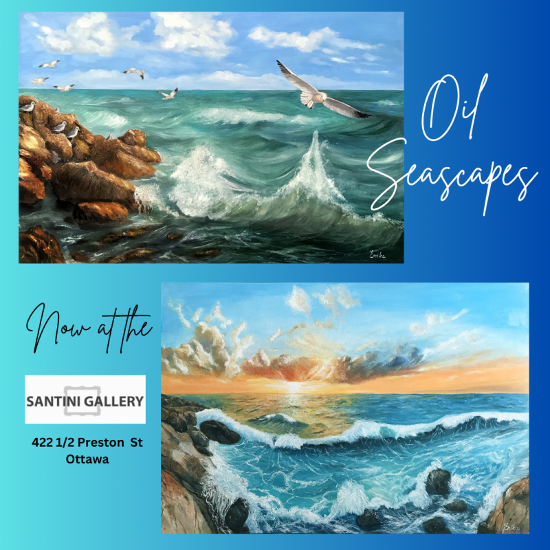 I exhibit throughout the year in selected community and commercial galleries, most notably at the Foyer Gallery, the Santini Gallery, and starting in January 2026 at the Kanata Civic Art Gallery. As an active member of several art organizations in the Ottawa area, I also exhibit occasionally at the Plant Recreation Centre, Shenkman Arts Centre, Zolas Restaurant, Ottawa School of Art Boutique, recreation complexes and public libraries, as well as in other Ottawa area venues and events.
