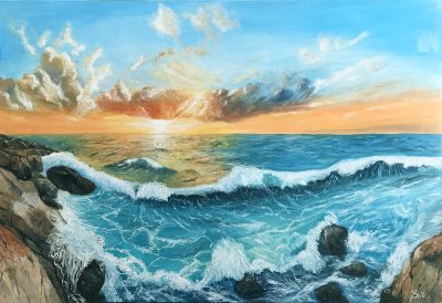 Mixed media opened up endless possibilities for experimentation and creativity. Combining different materials and techniques allowed me more complex and textured artworks. I have integrated different elements, including modeling paste, real rocks, and seashells into acrylic paintings and finished them off with a shiny coat of resin. This stage allowed me to think outside the box and push the boundaries of traditional art forms.